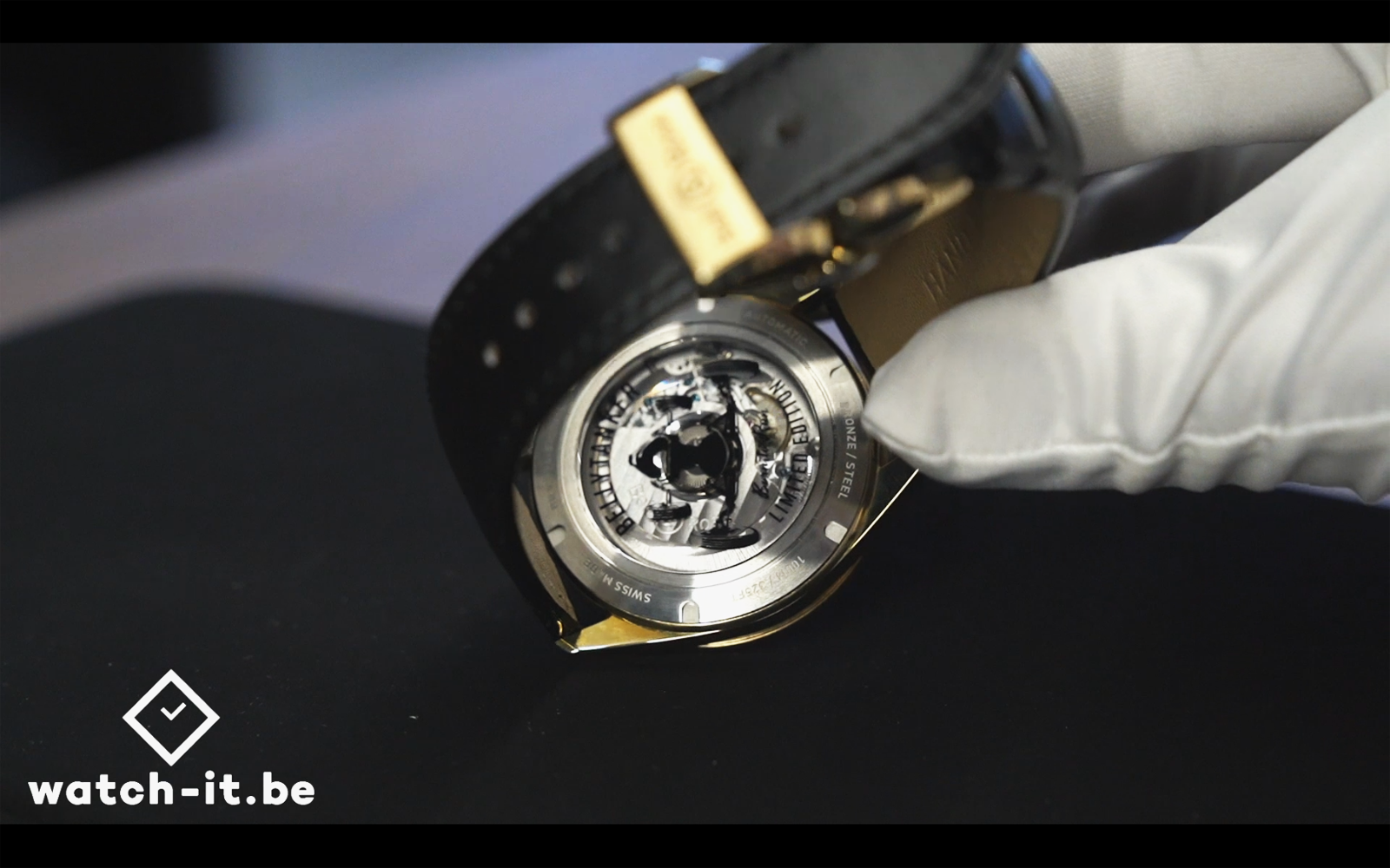 Le fond laisse apparaitre son calibre BR-CAL.301 (équivalent à l’ETA 2894-2) à remontage automatique d’une autonomie de 42 heures. (on le voit mieux dans la vidéo)