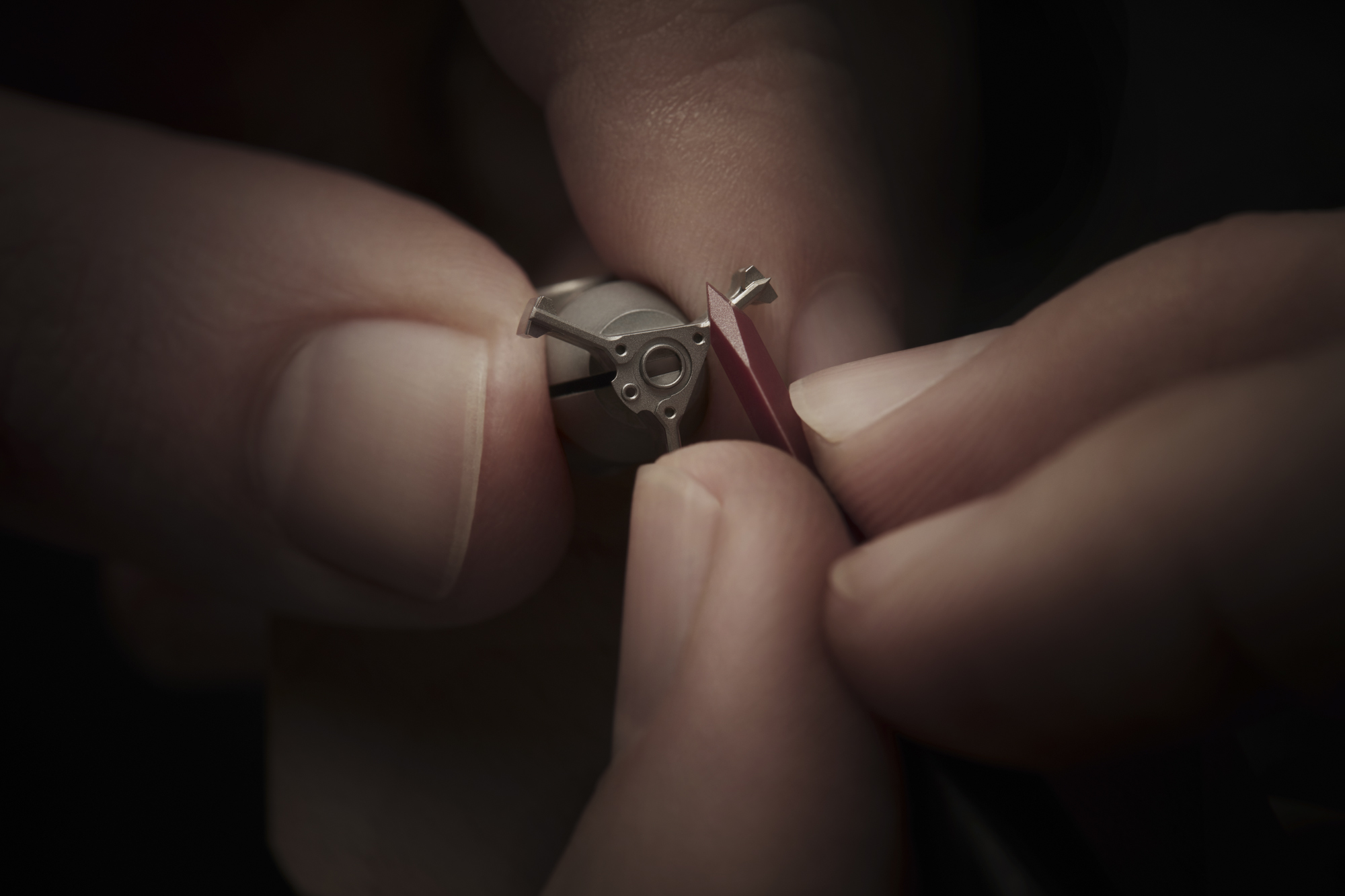 Les technologies modernes ont joué un rôle important dans la conception de ce tourbillon car sa cage est en titane et le spiral ainsi que la roue d’échappement sont en silicium. Comme la construction du mouvement a été repensée, la rotation de la cage est entraînée par une roue dentée périphérique. Le tourbillon avec l’ensemble de ses composants semble flotter dans l’espace.