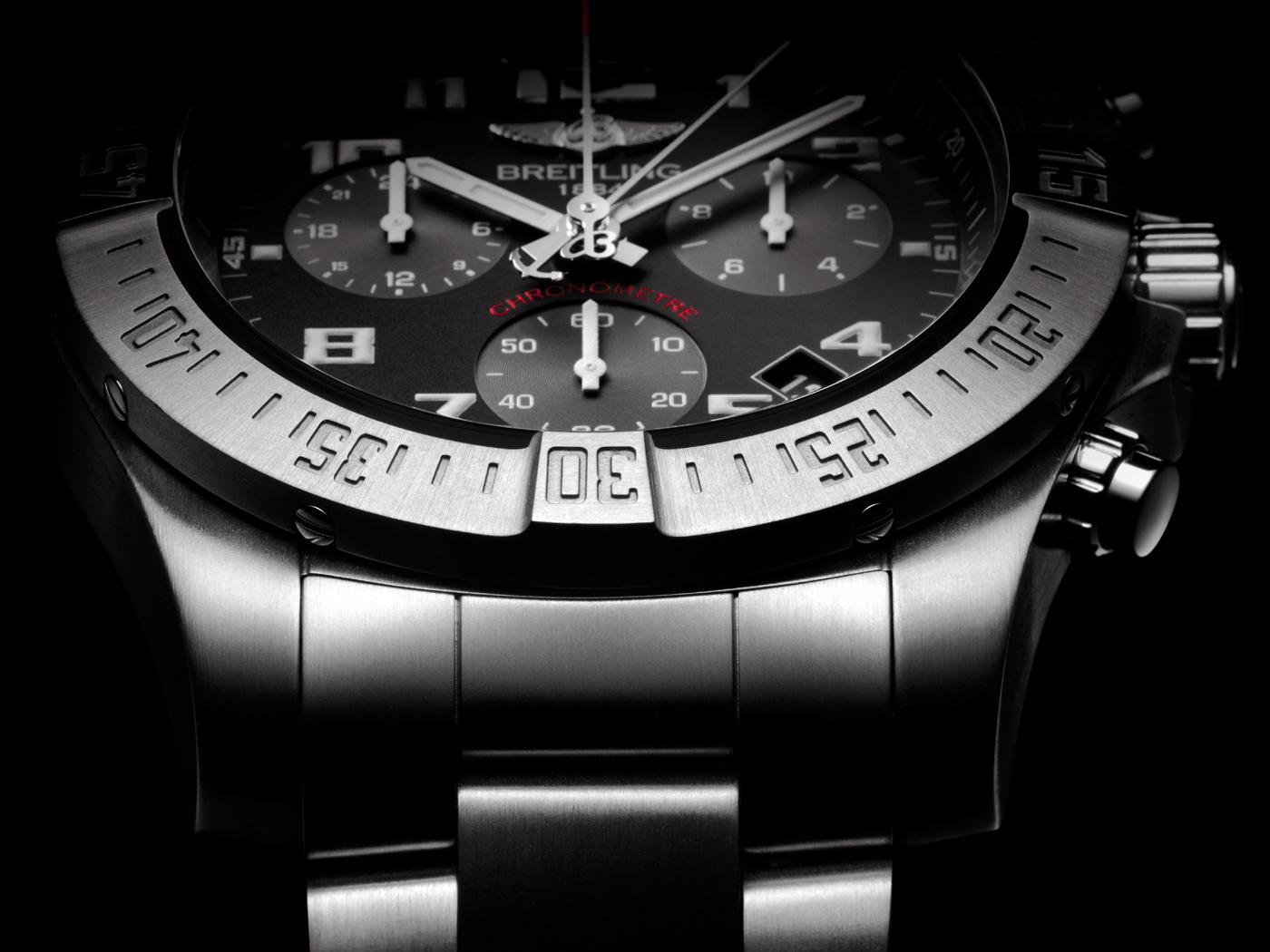 Mouvement: Calibre Breitling Manufacture B60, officiellement certifié chronomètre par le COSC, SuperQuartzTM thermocompensé.