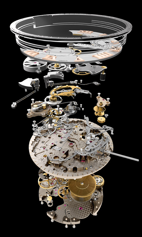 L’usinage de l’ensemble timbres/glace a demandé plus de trois ans de mise au point et preuve de sa solidité, Chopard a fait subir deux millions d’impacts par des marteaux en acier sur le saphir et il n’a pas cassé.