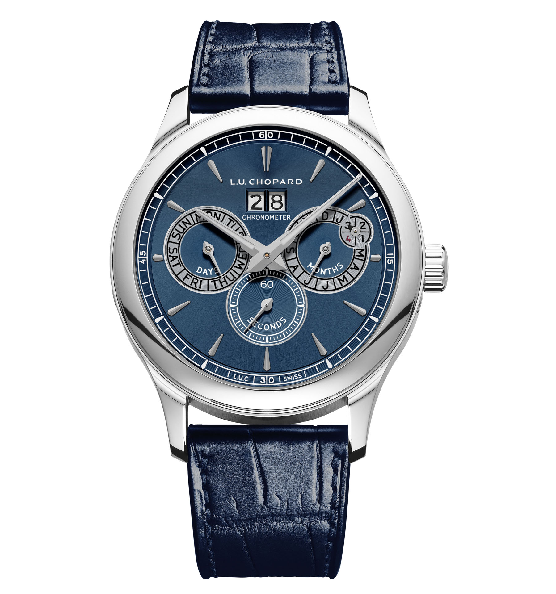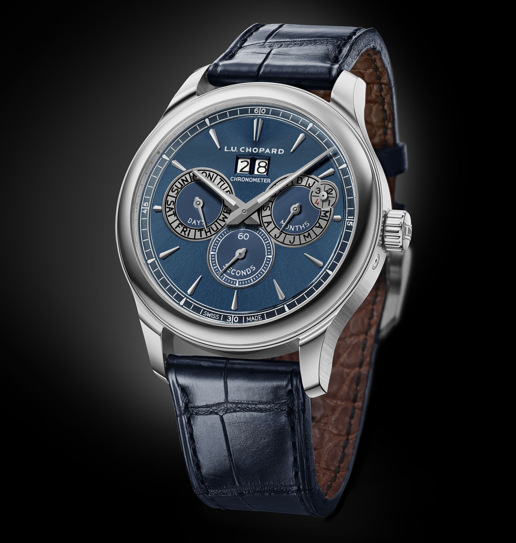 Chopard décline désormais la L.U.C Perpetual Twin en version acier doté d’un cadran bleu profond et pour la première fois ce garde-temps est également présenté en or rose 18 carats, avec un cadran au gris tous deux à la finition satinées soleil.