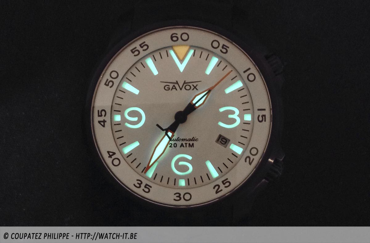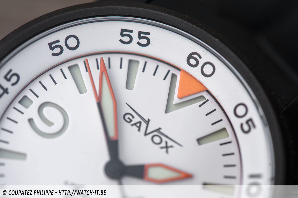 Cette montre est vendue 650€ en version acier et 700€ en version PVD par Gavox sur leur site et vous sera livrée dans une boite en bois comme pour l’Aurora.