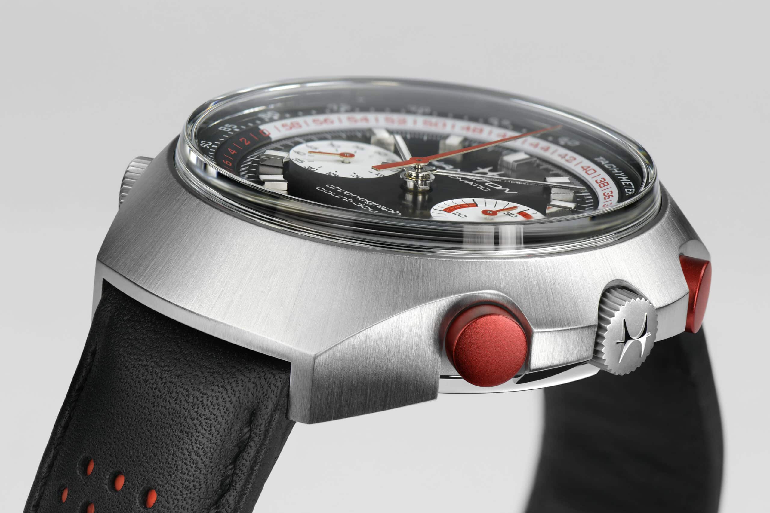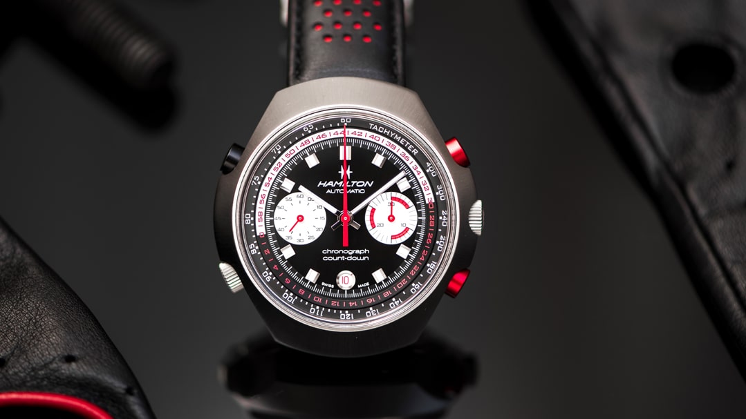 À l’occasion du 50e anniversaire du Calibre 11, lancé en 1969 et partiellement créé par Hamilton, voici la Hamilton Chrono-Matic 50 qui s’inspire de la Chrono-Matic E du début des années 70.