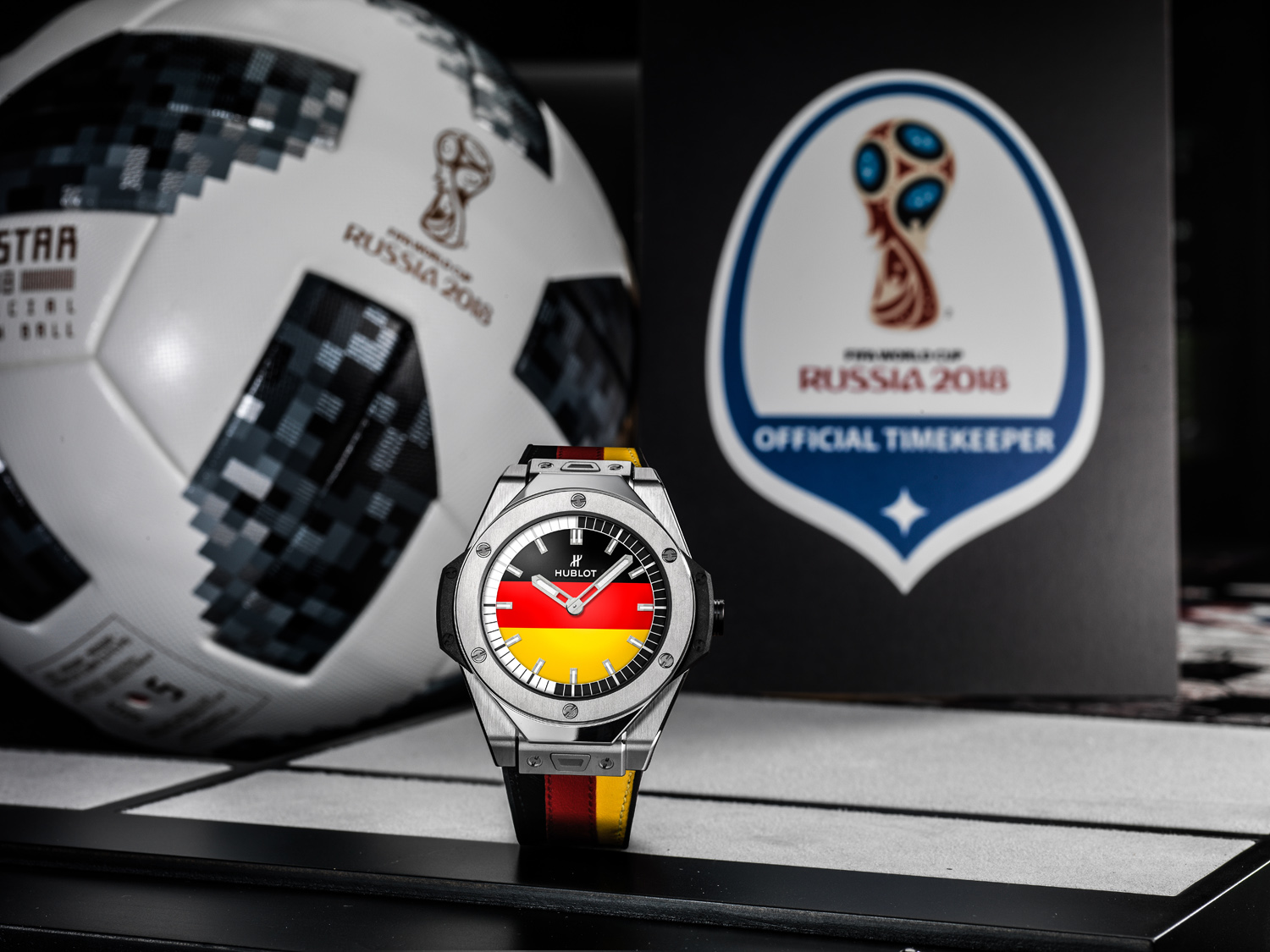 La montre possède une application spécialement développée pour la compétition et 32 cadrans » fan » à l’effigie des drapeaux des nations participantes.
