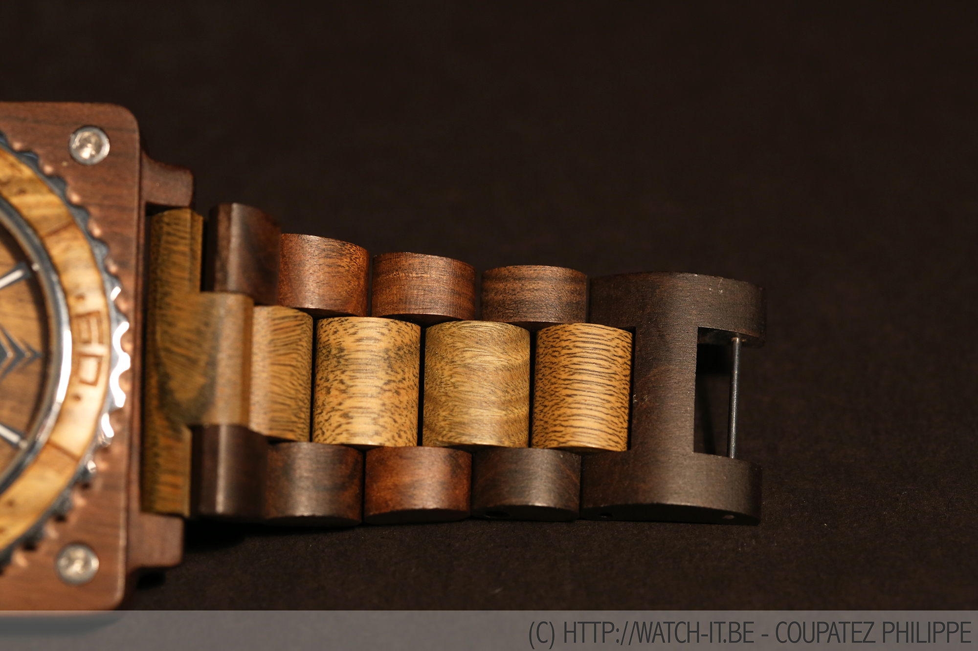 Le bracelet est taillé dans le même morceau de bois que la montre et possède un fermoir à clip. Cette montre ne pèse que 45 grammes avec son bracelet et vous reviendra à 140 €. Toutes leurs montres sont animées par des mouvements à quartz japonais Citizen.