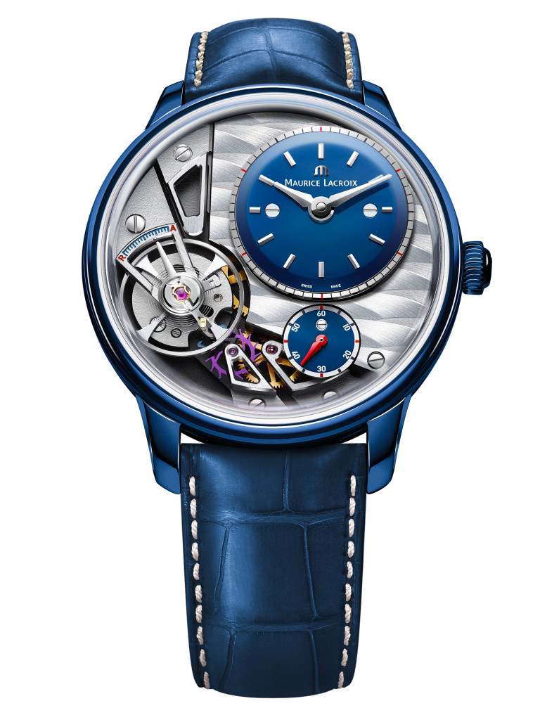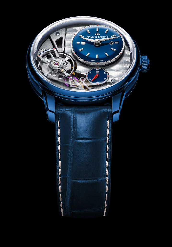 Maurice Lacroix a présenté sa pièce unique qui sera mise aux enchères dans le cadre d’Only Watch 2015. Le bleu est une couleur très à la mode dans l’horlogerie depuis quelques années, mais ici le boîtier est en alliage PowerLite® bleu poli et son design spécial créent un effet qui ne manquera pas d’attirer l’attention. L’utilisation de cet alliage unique et brevetée par Maurice Lacroix est une fusion de titane, d’aluminium, de magnésium, de zirconium et de céramique formant un alliage robuste, durable et léger couplé à une incroyable finition.
