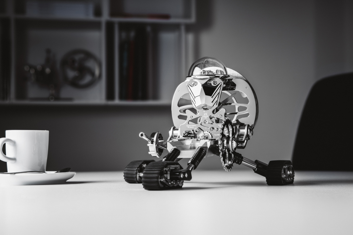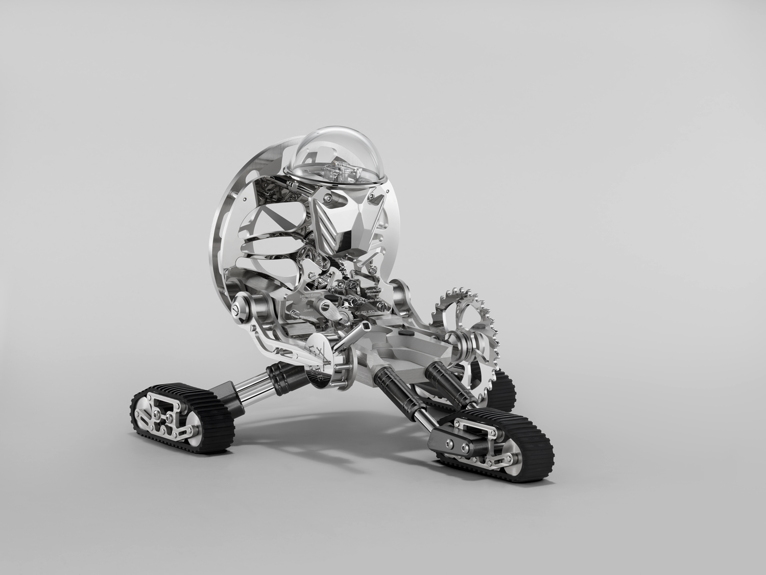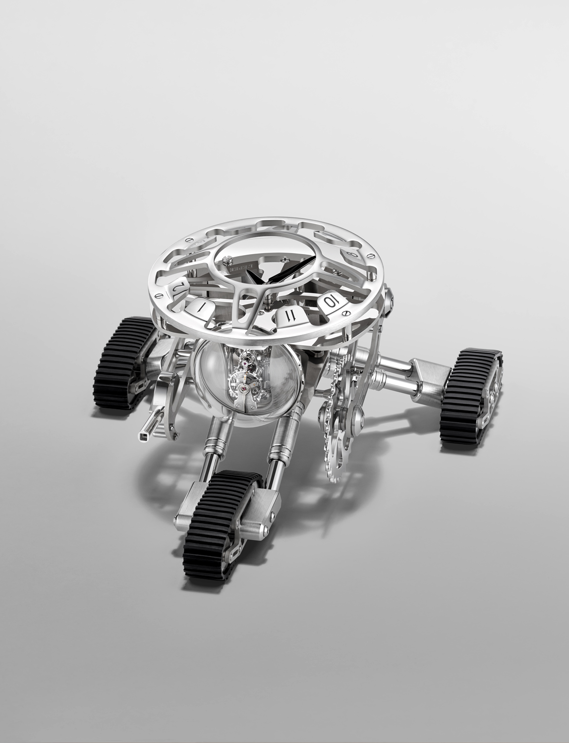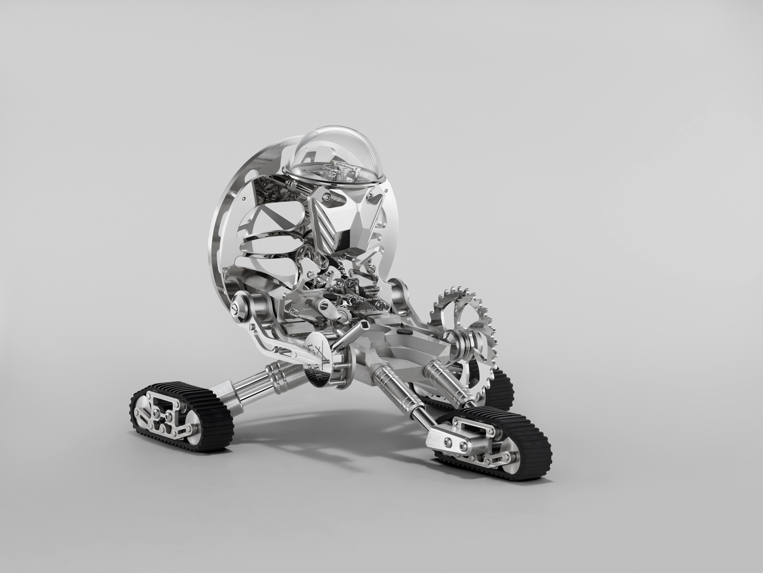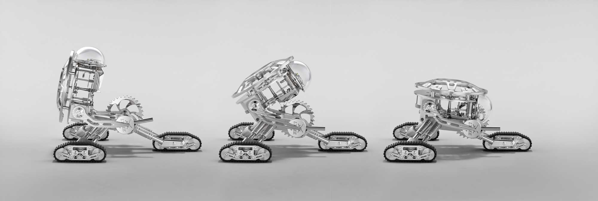 MB&F et l’Epée 1839 présentent Grant, une pendule-robot qui tient des Transformers en mission sur trois chenilles.