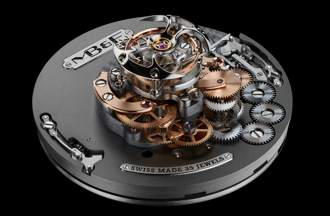 Le mouvement à tourbillon volant central 60 secondes à l’architecture verticale tridimensionnelle de 303 composants et doté de 72 heures de réserve de marche et il a été entièrement conçu et développé à l’interne par MB&F. Il tire son inspiration dans les montres de poche « oignons » que l’on retrouvait au XVIIIème siècle. Tous les mécanismes sont montés autour de l’axe central, l’énergie va donc du rotor au tourbillon volant en passant en ligne droite à travers la montre.