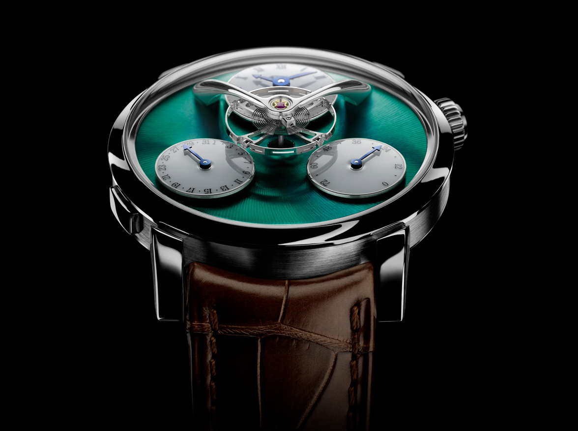 MB&F présente une nouvelle déclinaison de la fantastique MB&F LM Split Escapement sortie en 2017. Il s’agit d’une édition limitée à 33 pièces en titane avec un spectaculaire cadran vert traité CVD. La MB&F LM Split Escapement a été lancée en 2017 en quatre versions en or blanc 18 carats avec cadrans grainés en bleu, ruthénium, or rose ou or jaune.