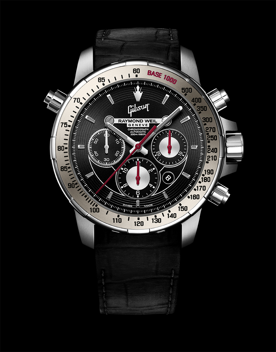 Raymond Weil, l’horloger suisse et grand amateur de musique ne s’est pas seulement contenté de réaliser un garde-temps inspiré du violoncelle, il s’est aussi allié à Gibson pour créer un modèle exclusif de sa montre Nabucco, mais limité à 200 exemplaires. Ce modèle a été présenté à l’occasion du Baselworld 2015.