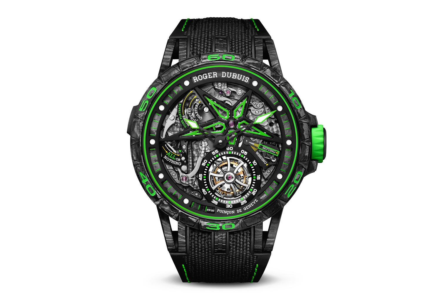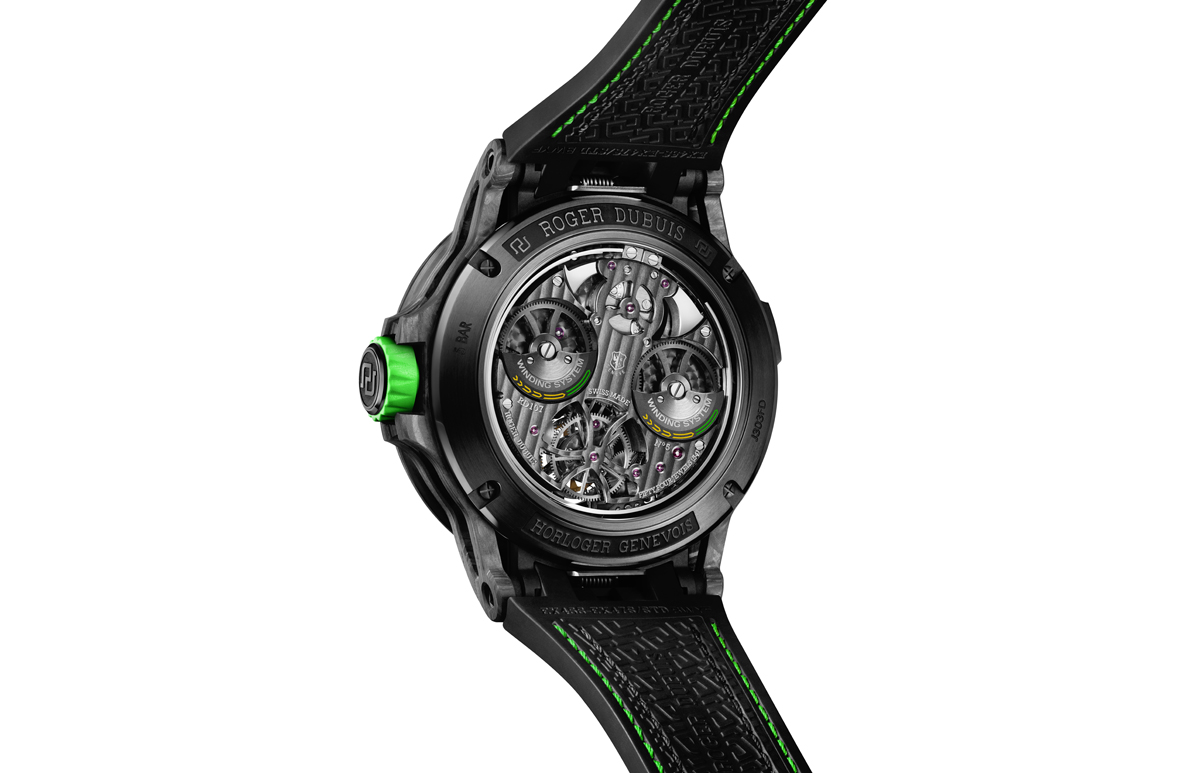 Ces dernières années, Roger Dubuis a puisé son inspiration auprès d’autres industries de pointe, comme l’automobile avec la Roger Dubuis Excalibur Huracán Performante. Cette fois-ci, Roger Dubuis revisite deux de ses éléments emblématiques : la répétition minute et le tourbillon volant.