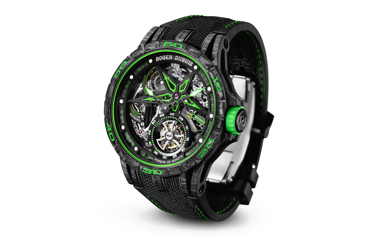 Roger Dubuis combine ici deux complications prestigieuses et exclusives en les déclinant en carbone SMC logées dans une boîte avec lunette et rehaut assortis, faisant de l’Excalibur Spider Unique Series est l’une des rares répétitions minutes proposées sur le marché à posséder une boîte à la fois sportive et sophistiquée.