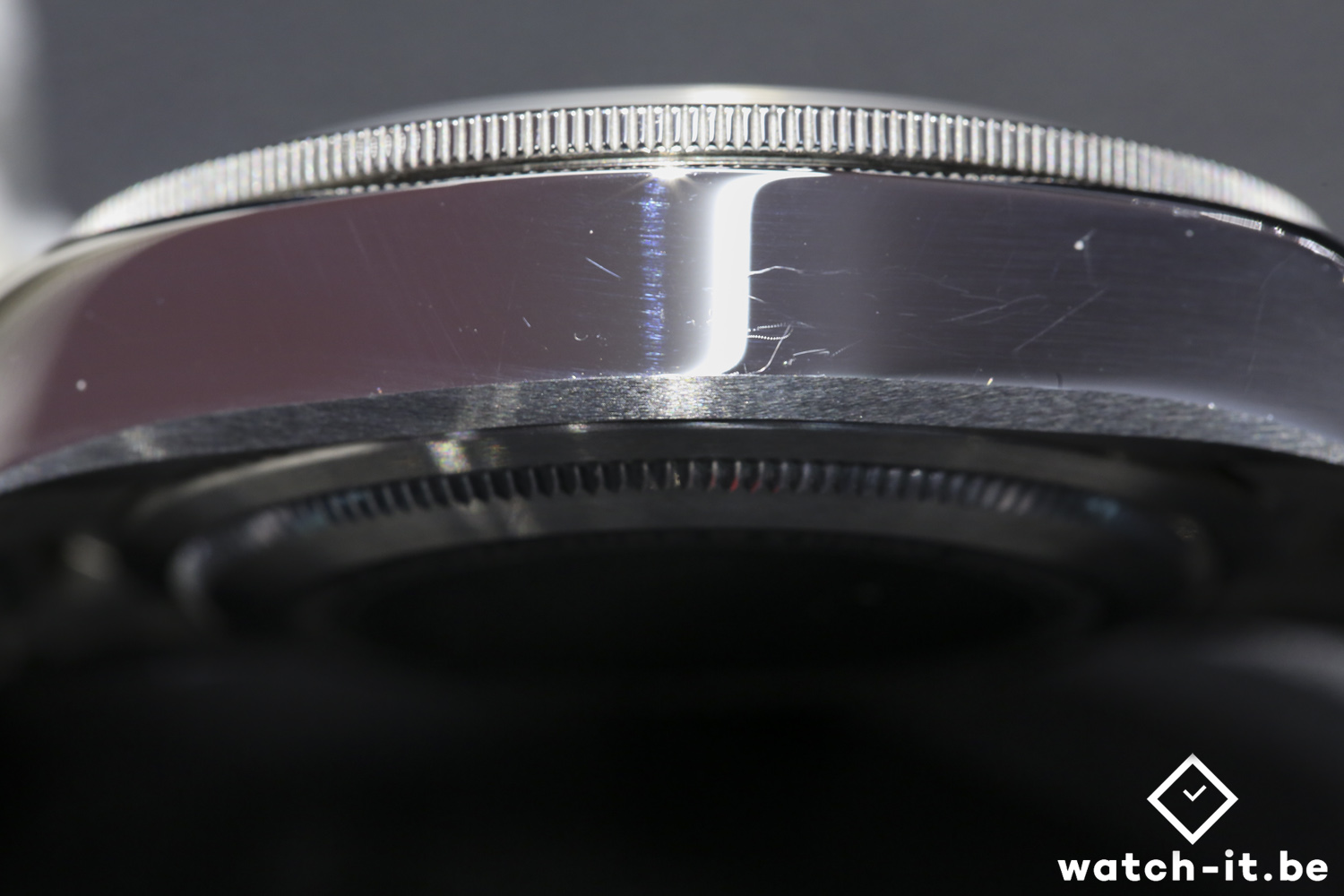 La Tudor Black Bay GMT possède une boîte en acier de 41mm satinée avec chanfreins polis mais légèrement redessinée sur le dessous afin de limiter l’impression d’épaisseur de la boite (plus épaisse que les autres Black Bay à cause du nouveau mouvement) et ornée d’une lunette tournante bidirectionnelle 48 crans en acier avec disque en aluminium anodisé empruntant son bleu et son bordeaux aux autres modèles de la ligne BlackBay tout comme son étanchéité de 200m.