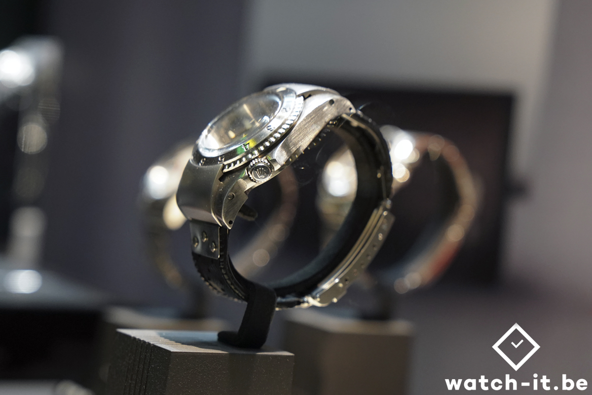 S’inspirant librement du prototype mis au point dans les années 1960, elle est équipée d’une lunette 12 heures et possède une forme de boîtier peu conventionnel à cause de sa couronne placée à quatre heures et du mécanisme de lunette assez massif permettant de verrouiller la lunette tournante bidirectionnelle. Ce mécanisme fonctionne légèrement différemment de l’original car seul la pièce mobile situé à 12h peut être ouverte sur la P01.